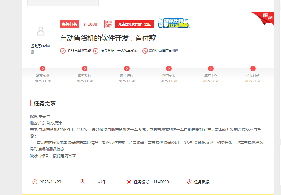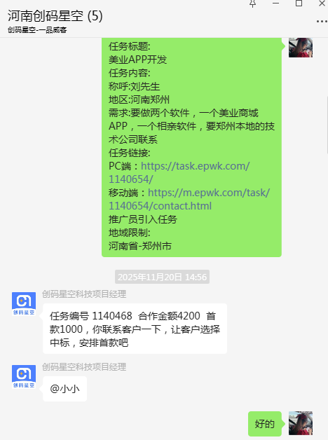 平台的服务体验同样出色。在谈单与托管过程中,平台秘书与推广员客服全程跟进、紧密协作,形成双重服务体系。他们不仅协助双方清晰沟通需求,还及时解决合作中可能出现的问题,真正做到了“为项目顺利推进筑牢后盾”。这种人性化、专业化的服务支持,让即使初次使用平台的用户也能轻松上手,专注项目本身。