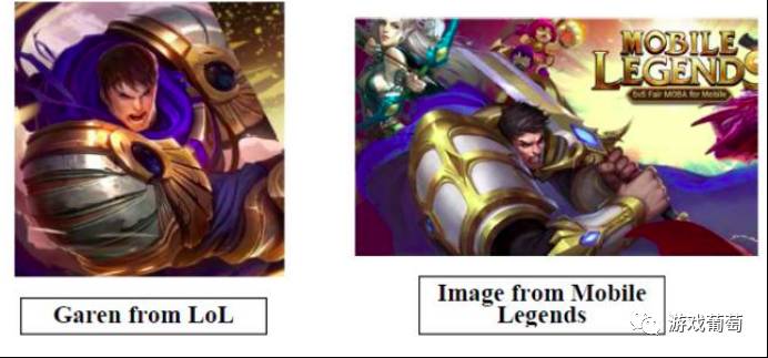 左侧是LOL中的英雄“盖伦”,右侧是被告的Mobile Legends中的英雄形象。两幅原画中的英雄也十分相似。